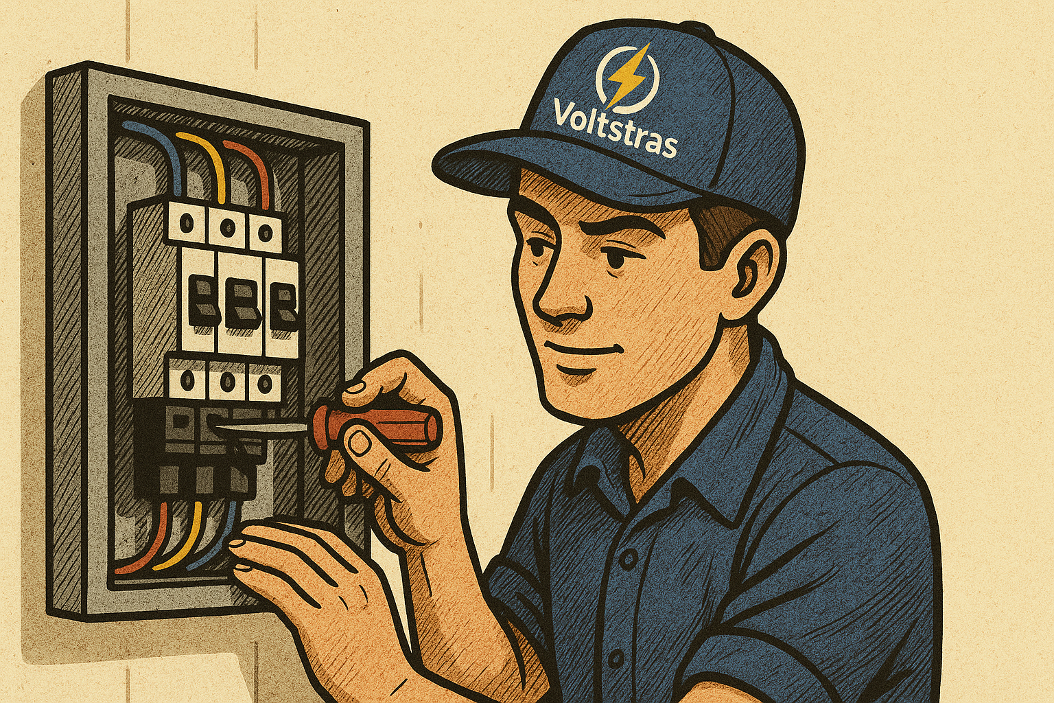 Chez Voltstras, notre équipe qualifiée vous accompagne avec sérieux et savoir-faire pour tous vos projets électriques. Nous nous engageons à vous offrir des solutions sûres, modernes et adaptées à vos besoins.